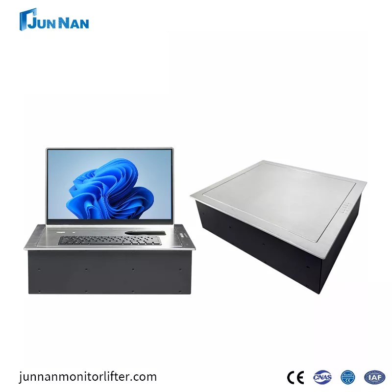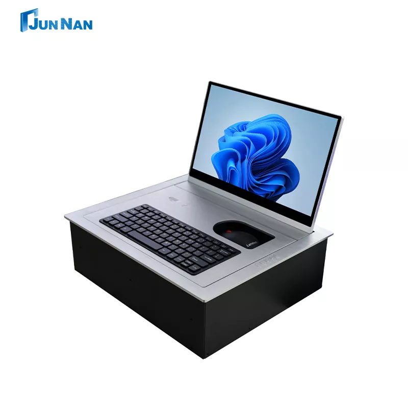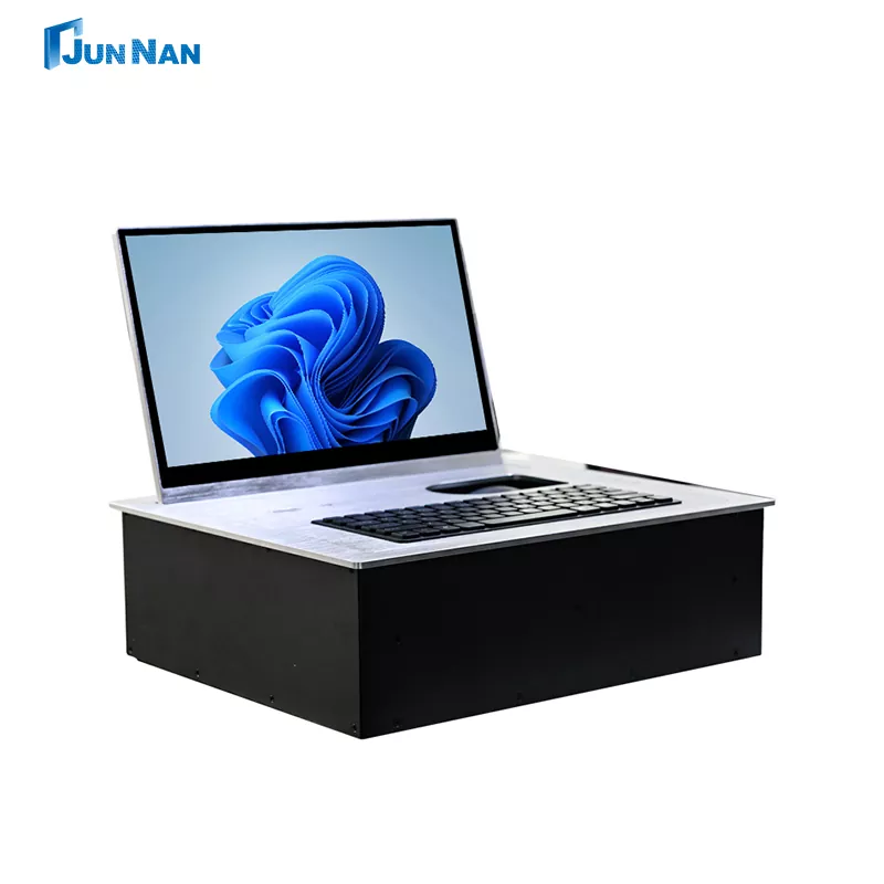 Guangzhou Junan on ammattimainen neuvottelupöydän käännettävän näytön valmistaja tehokkaisiin kokoustilaisuuksiin Kiinassa. Neuvottelupöydän läppänäyttöä käytetään pääasiassa korkean tason johtajien neuvottelupöydässä, neuvottelupöydän läppänäytössä on sisäänrakennettu korkean suorituskyvyn kosketustoiminto, flip floppia ohjataan AC-moottorilla, jotta se kääntyy vakaan toiminnan varmistamiseksi. Neuvottelupöydän läppänäyttö on eräänlainen konferenssihuoneissa, luentosaleissa ja muissa paikoissa käytetty laite, joka voi piilottaa näytön neuvottelupöydän sisälle, kun sitä tarvitsee käyttää sähköisellä tai manuaalisella ohjauksella näytön kääntämiseksi työpöydälle, ja käännä se sitten alas, kun se ei ole käytössä, jotta se toimii pölyn, varkaudeneston ja pitää työpöydän sileänä ja kauniina. Moottoroidun ohjauksen ansiosta läppä voi helposti kääntää näytön oikeaan kulmaan parhaan katselukulmavaikutelman saavuttamiseksi. Voidaan varustaa mikrofonilla, yhdellä näppäimellä, etu- ja takasäädöllä, puristusnestotoiminnolla, turvallinen ja huoleton, piilotettu upotettu asennus on erittäin kaunis.