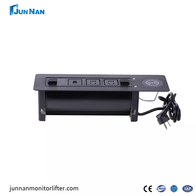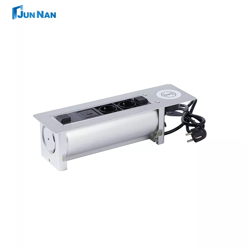 JUNNAN USB-liitäntä tukee yhden kosketuksen kääntöpaneelitoimintoa, ja liitäntä piilottaa työpöydän viemättä tilaa. Edistyneet USB-pistorasiat ovat uusinta tyyppiä, helppo huoltaa, voidaan ostaa tukkumyynnistä tai räätälöidä asiakkaille. All-in-One Electric Flip Socket + Wireless Charging on moderni pistorasian muotoilu, jossa yhdistyvät sähköinen flip-tekniikka ja langattomat latausominaisuudet. Lisäksi junnan-laitteillamme on monia sertifikaatteja, kuten CCC, CE-sertifiointi, ROHS-, ISO-sertifiointi jne. Tuotteemme ovat turvallisia ja laadukkaita, vientikelpoisia, tehtaan suoramyynti, edullinen hinta, oma tehdas ja toimineet jo vuosia.