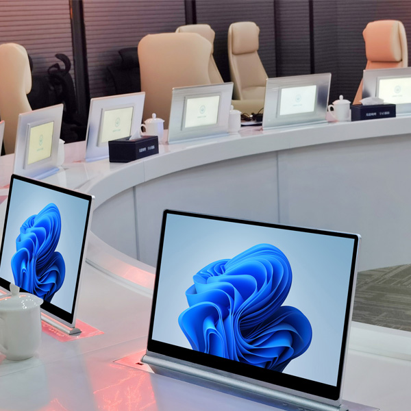 Sisäänvedettävä moottoroitu näytön nostopöytä paperittomiin kokousjärjestelmiin